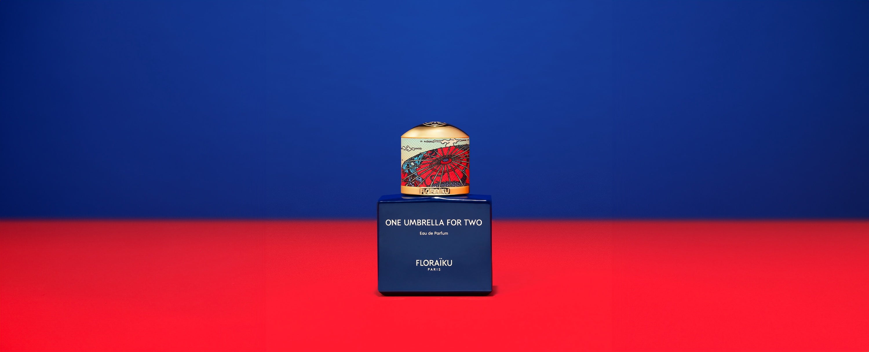 A traditional Japanese umbrella named wagasa adorned with a pattern of dragon, welcomes under its roof a delicate perfume done by the French Maison de parfum, Floraïku Paris, One Umbrella for two.
